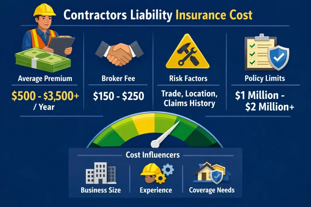This page focuses specifically on what drives cost, what increases the total policy price, and how contractors can reduce premium.